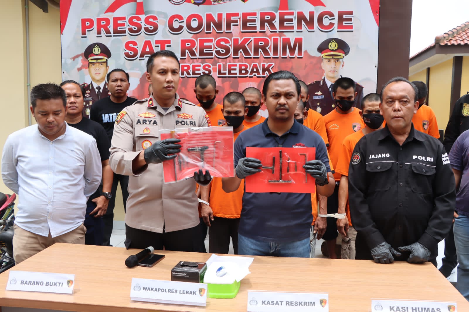 “Satreskrim Polres Lebak melakukan penyelidikan dan mengindentifikasi beberapa pelaku dan berhasil mengamankan pelaku sebanyak 10 orang yaitu HL, SA, MH, AB, CC, MR, MY, AG, WN, TG serta 15 Unit Sepeda motor serta kunci leter T dan mata kunci,” tambahnya.