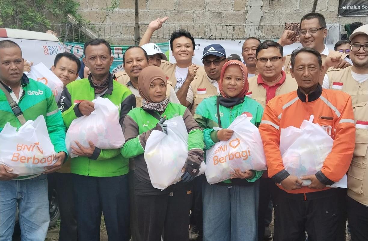 Lokasi kedua pembagian paket sembako juga berasal dari Bank Negara Indonesia yang dibagikan kepada 450 driver Ojek Online yang bekerjasama dengan Koalisi Ojek Nasional (KON) dibagikan dengan lokasi komunitas Ojol di daerah Cakung, Jakarta Timur.