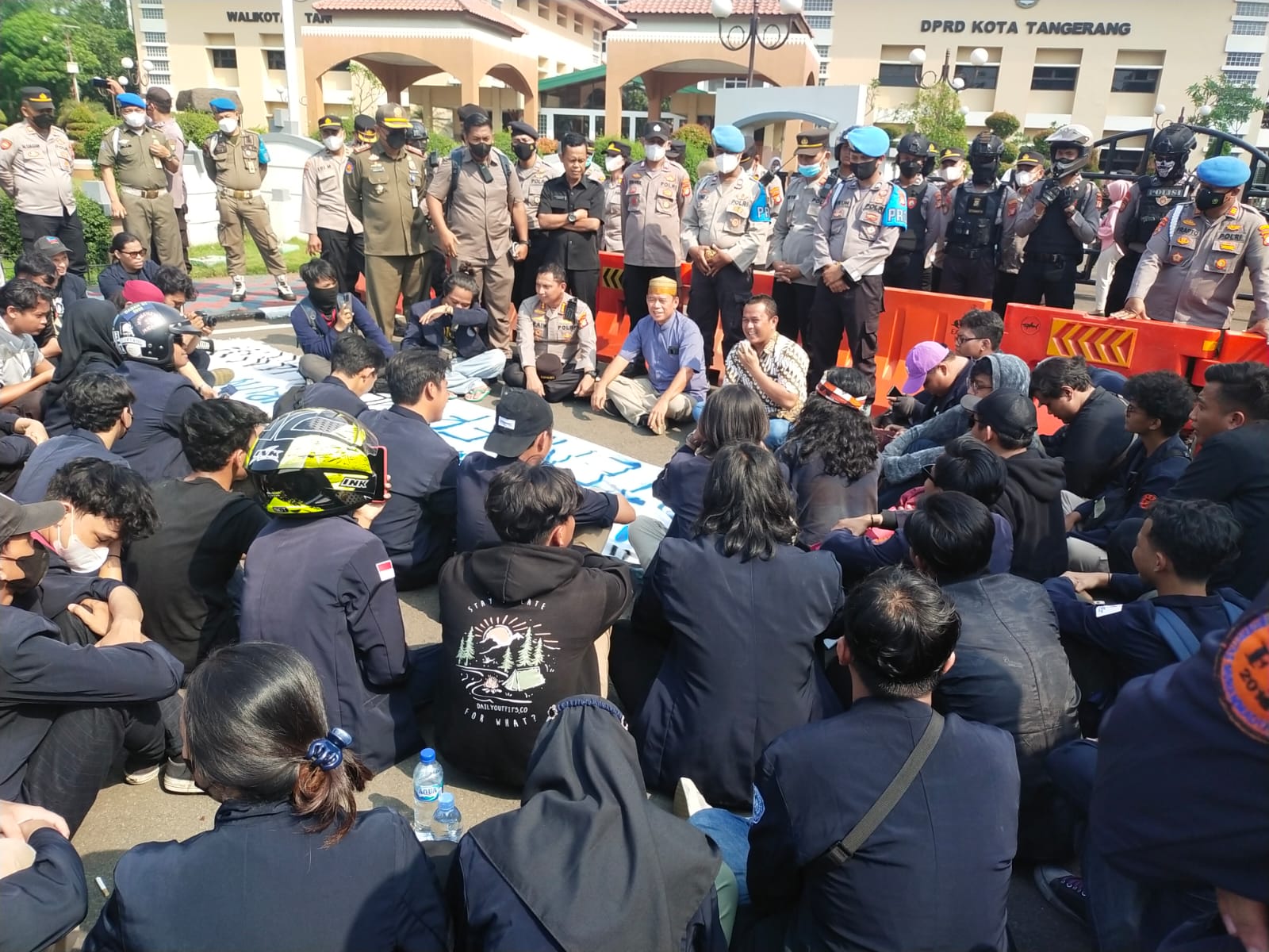 Aksi menolak kenaikan harga BBM dihalaman Kantor Walikota dan DPRD Kota Tangerang dengan mendapat pengawalan ketat dari pihak keamanan dari Polres Metro Tangerang Kota dan Satuan Polisi Pamong Praja (Pol PP) Kota Tangerang.