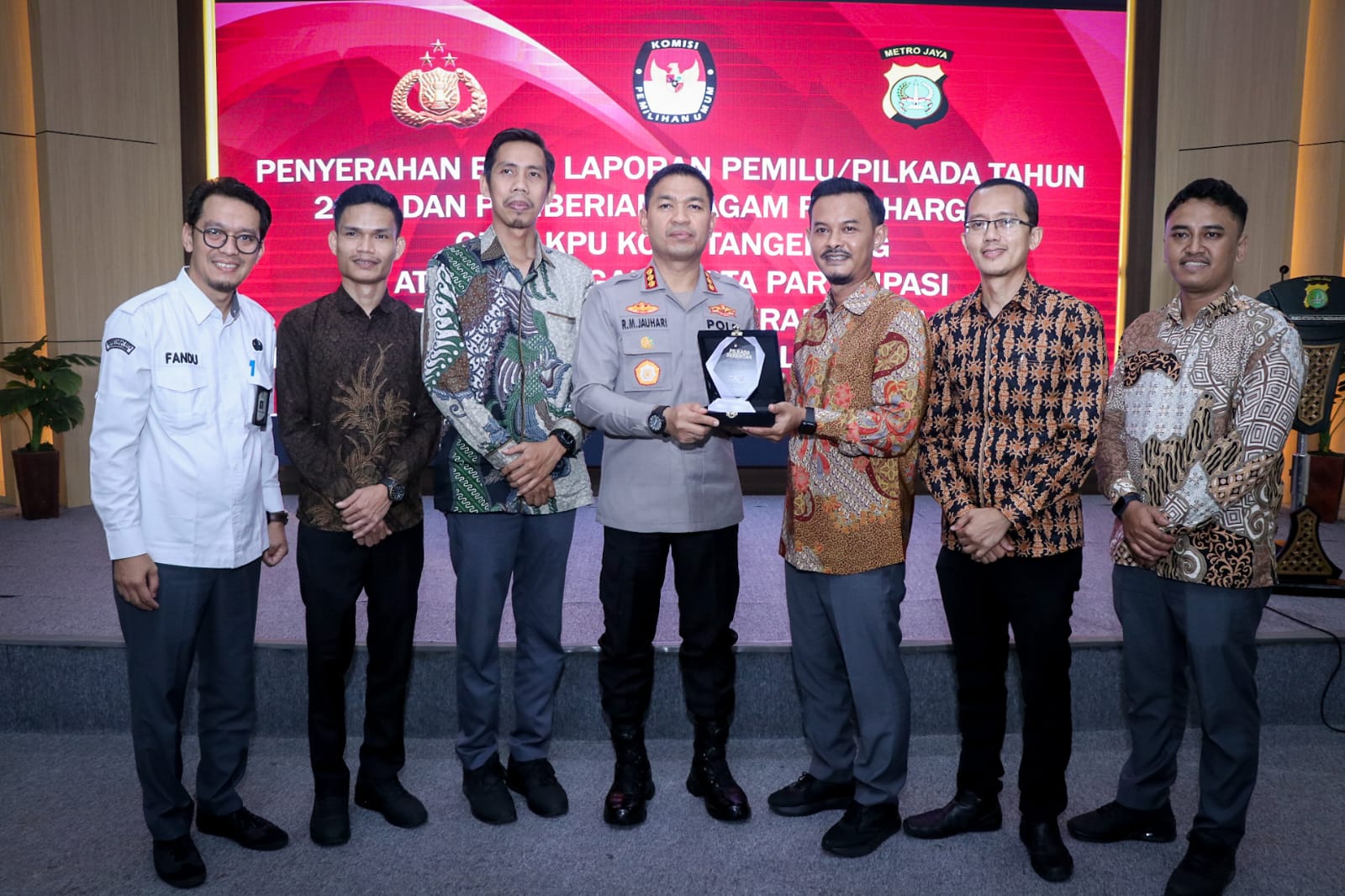“Saya, selaku Kapolres Metro Tangerang Kota, menyampaikan apresiasi yang setinggi-tingginya kepada KPU Kota Tangerang. Ini bukan hanya simbol penghargaan, tapi wujud nyata dari kerja sama dan komunikasi yang kuat antara KPU dan Polri,” ujar Jauhari dalam sambutannya.