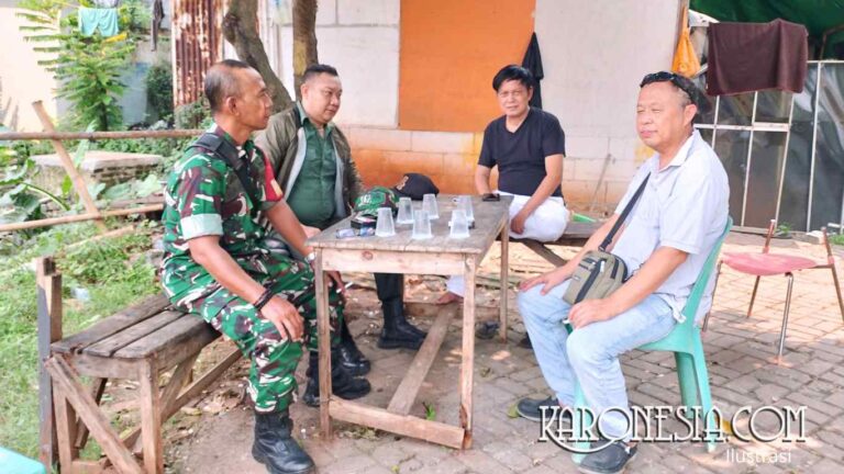 sinargunung.com, Tangerang | Anggota Koramil 04/Ciledug, Peltu Nuriman, melaksanakan komunikasi sosial (komsos) dengan tokoh masyarakat Ahmad Sobari di Jalan Raden Fatah, RT004/RW010, Kelurahan Parung Serab, Kecamatan Ciledug, Kota Tangerang, Rabu (4/6/2025).