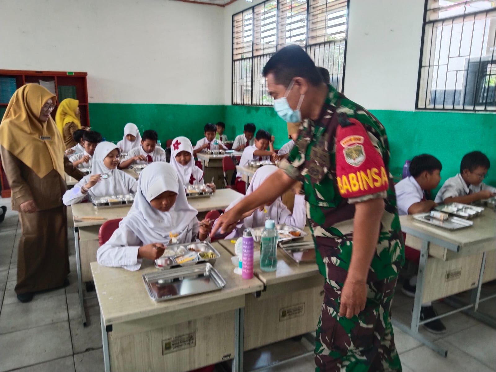 sinargunung.com, | Tangerang | Serma Masdropi, Serka Amardi dan Serka Ismail Babinsa Koramil Batuceper, Kodim 0506/Tgr melaksanakan kegiatan Monitoring Makan Bergizi Gratis (MBG) untuk anak-anak sekolah tingkat SD, SMP dan SMKN di wilayah Koramil 02/Batuceper Jalan Marsekal Suryadarma Kelurahan Neglasari Kecamatan Neglasari, Kota Tangerang, Senin (14/04/2025).