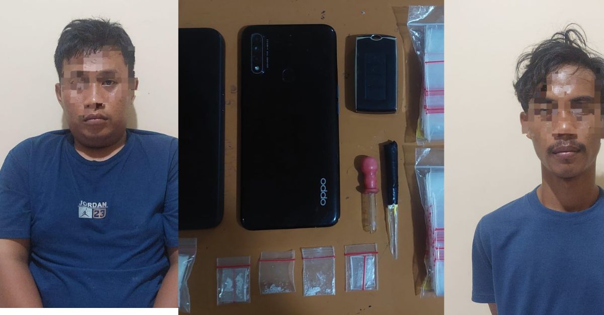 Setelah dibuntuti sampai sebuah kontrakan di Gang Jambul, Kampung Alas Tua, petugas memastikan keduanya membawa sabu. Saat dilakukan penggeledahan, ditemukan sebuah dompet putih berisi: satu klip besar sabu; 4 klip kecil sabu; dua handphone; satu pipet.