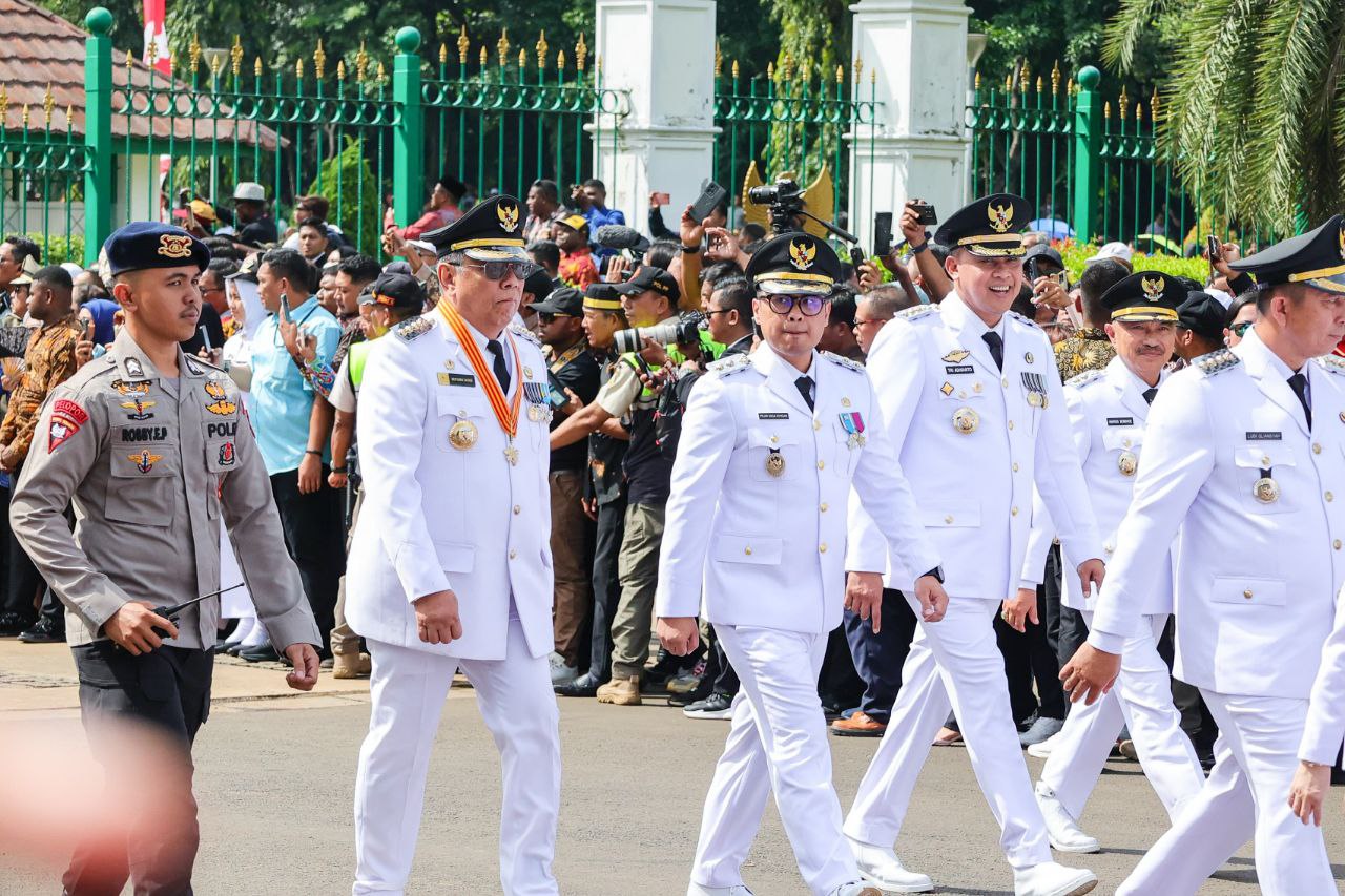 Prosesi pelantikan ini menjadi bagian dari momen bersejarah, di mana sebanyak 961 kepala daerah beserta wakilnya berjalan dari Monumen Nasional (Monas) menuju Istana Negara sejak pagi hari.