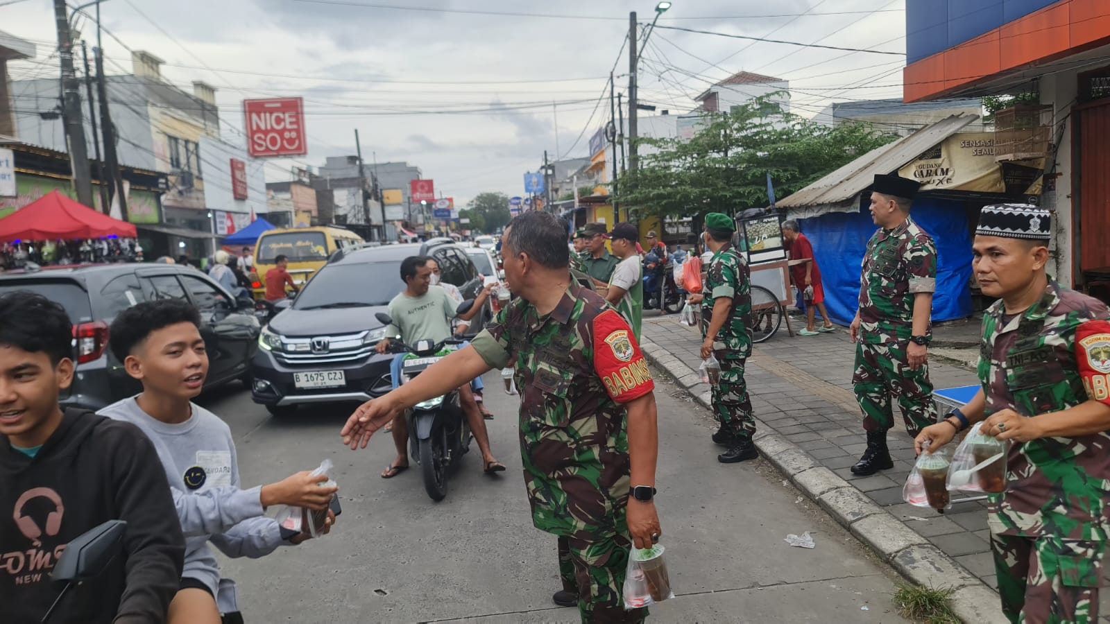 Dalam tema pembagian takjil serentak hari ini adalah “Roh TNI Adalah Rakyat, Maju Terus TNI Ku”, pembagian takjil dilakukan oleh 10 personil Koramil 06/CBD bersama 11 Mitra Jaya