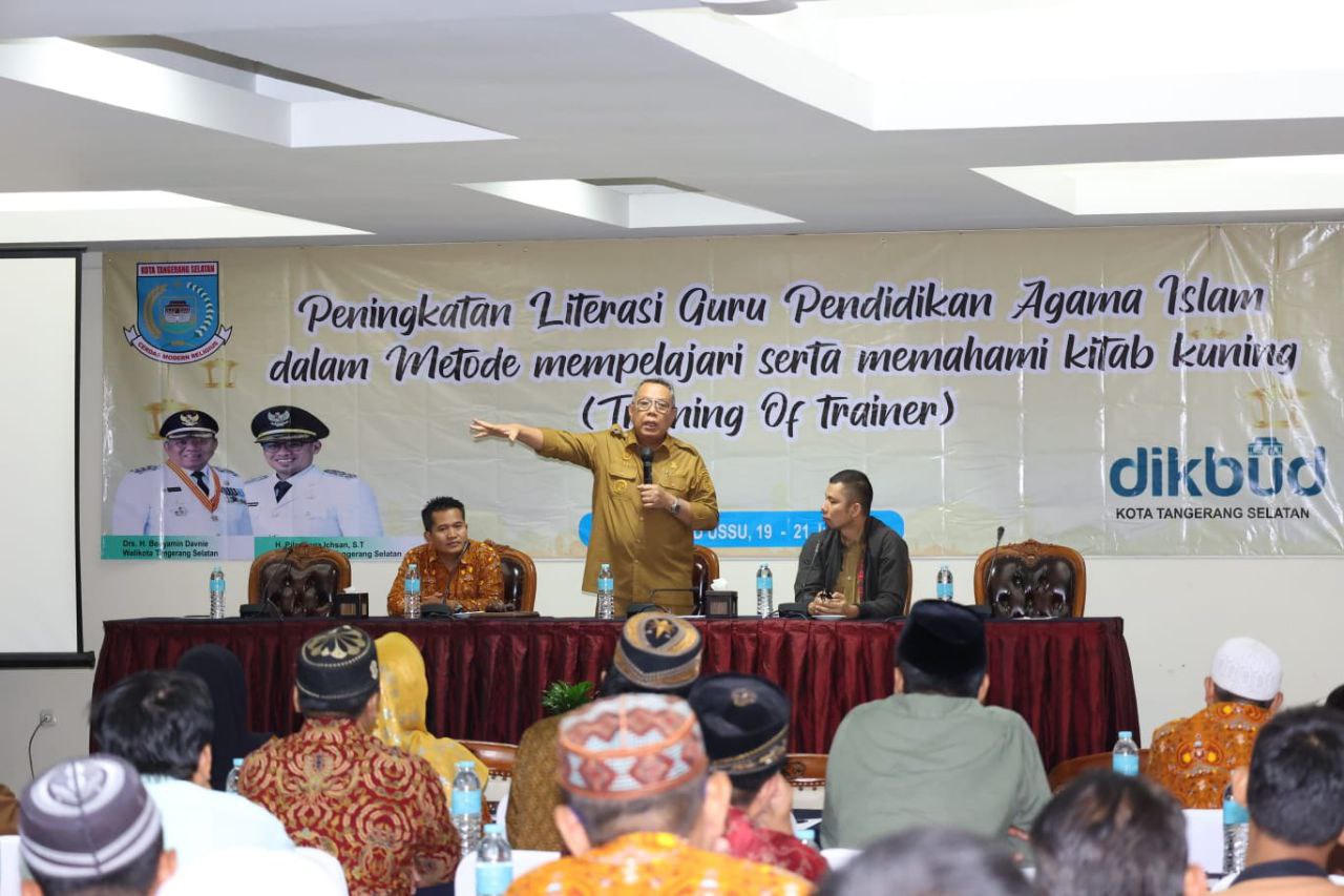 SINARGUNUNG.COM, TANGSEL | Wali Kota Tangerang Selatan Benyamin Davnie mengatakan bahwa keinginannya anak-anak didik di Tangerang Selatan mampu membaca kitab kuning. “Saya ingin yang lebih dalam lagi, anak-anak kita ajarkan supaya mereka bisa membaca kitab kuning,” ucap Benyamin saat membuka kegiatan peningkatan literasi bagi guru agama di Grand Ussu, Kabupaten Bogor, Senin (19/06).
