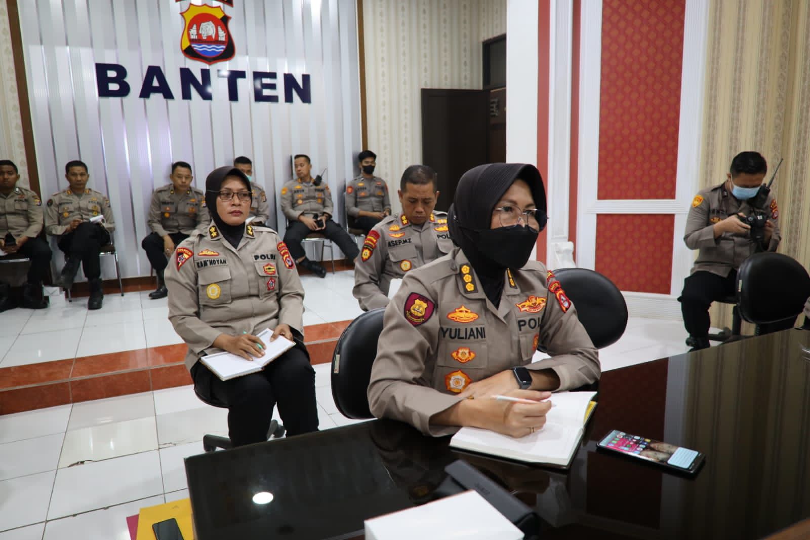 Anev mingguan ini dipimpin langsung oleh Kapolda Banten Irjen Pol Prof. Dr. Rudy Heriyanto didampingi Wakapolda Banten Brigjen Pol Drs. Ery Nursatari serta Pejabat Utama Polda Banten dan diikuti Kapolres jajaran secara virtual.