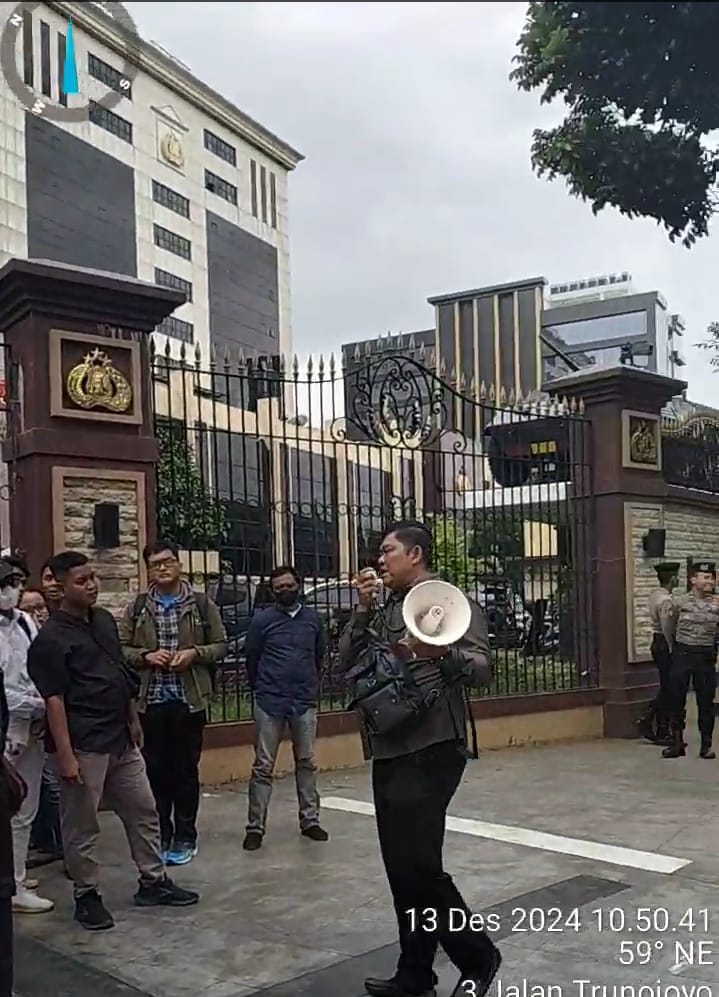 Puluhan massa Lembaga Swadaya Masyarakat (LSM) ABRI Perwakilan Provinsi Riau melakukan Aksi Damai di Markas Besar Mabes Polri Jakarta, Jumat (13/12/2024).
