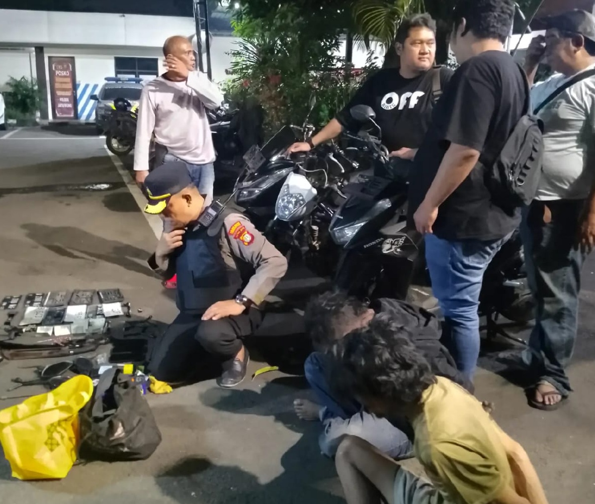 Penangkapan kedua terduga pelaku Curanmor oleh Polsek Jatiuwung, berkat adanya laporan informasi warga yang melihat gerak gerik mencurigakan 2 (dua) orang Pria, dimana (satu) orang laki-laki berada diatas kendaraan motor warga dan 1 (satu) orang lagi standbuy di motor Honda PCX yang dikendarainya, kemudian 1 (satu) orang pelaku sedang mengotak ngatik lubang kunci motor dan berhasil membawa kendaraan milik warga 1 unit Honda Beat Street warna Hitam