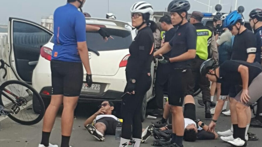 SINARGUNUNG.COM, TANGERANG | Enam orang pesepeda gowes IC (49), WW (62), AB (35), OS (42), O (45) dan Y mengalami luka-luka setelah tertabrak mobil sedan Mazda 2 yang kehilangan kendali saat di kendarai TJ (25).