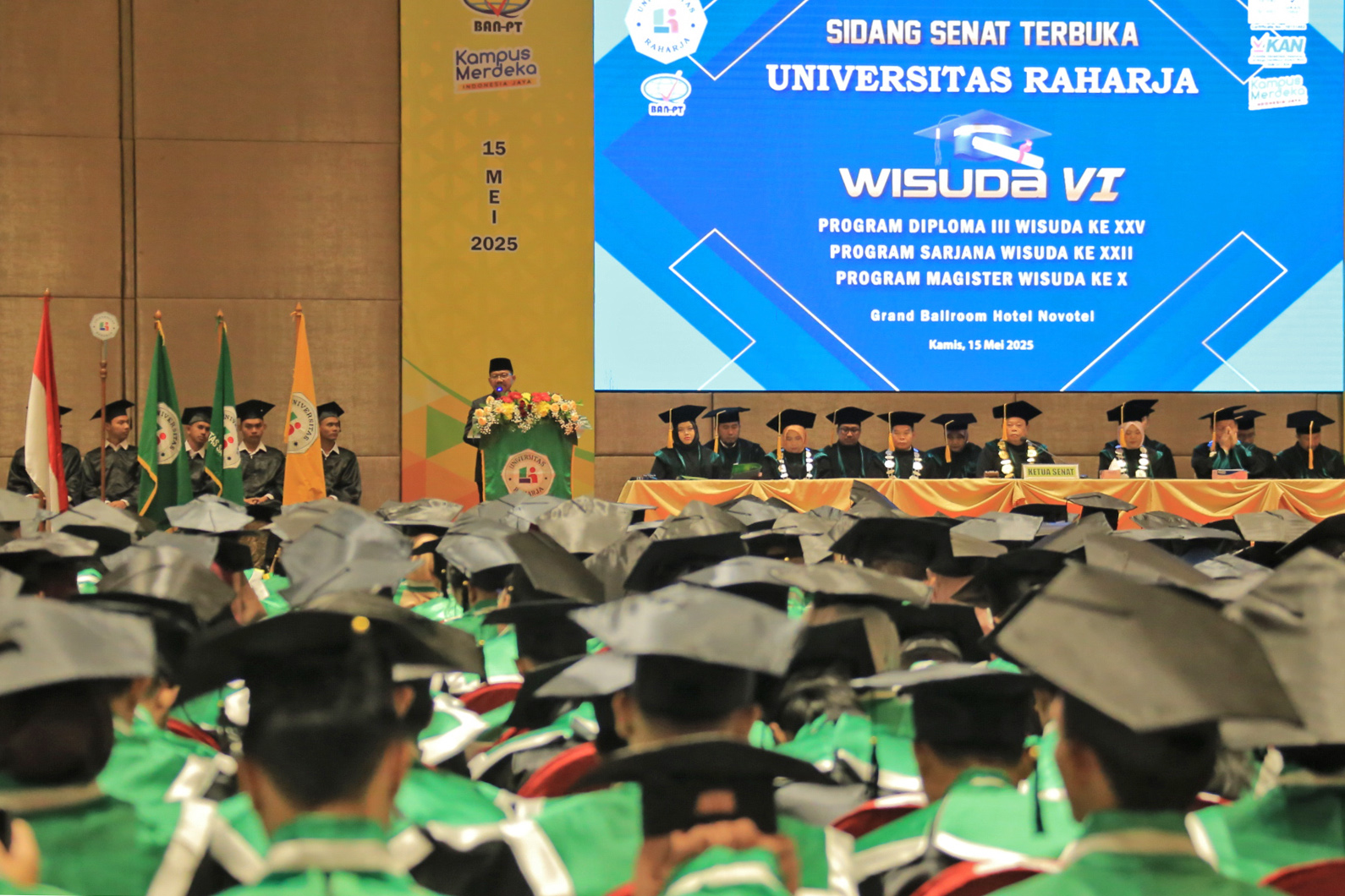 sinargunung.com, Kota Tangerang | Wali Kota Tangerang, H. Sachrudin, mendorong para wisudawan dan wisudawati Universitas Raharja untuk terus berinovasi dan berkontribusi nyata dalam pembangunan, khususnya di Kota Tangerang. Hal tersebut disampaikannya saat menghadiri Wisuda VI Universitas Raharja, yang digelar di Grand Ballroom Novotel, Kamis (15/05/2025).