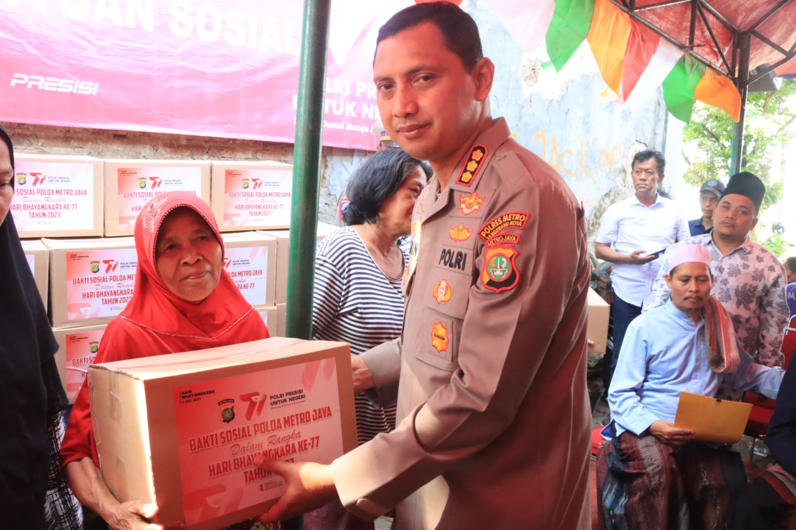 Bansos itu merupakan bantuan Polda Metro Jaya, khusus Polres Metro Tangerang Kota bertema ‘Polri Presisi untuk Negeri’ dalam rangka menyambut hari ulang tahun (HUT) Bhayangkara ke- 77 tahun 2023.