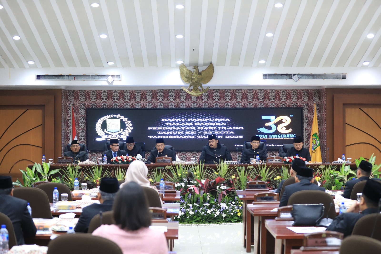 Sinargunung.com, Kota Tangerang | DPRD Kota Tangerang menggelar Rapat Paripurna dalam rangka HUT ke-32 Kota Tangerang di Ruang Paripurna, Puspem Kota Tangerang, Jumat (28/2/25). Rapat Paripurna dipimpin langsung Ketua DPRD Kota Tangerang Rusdi Alam, dengan didampingi Wakil Ketua DPRD Andri S Permana, Arief Wibowo dan Turidi Susanto.