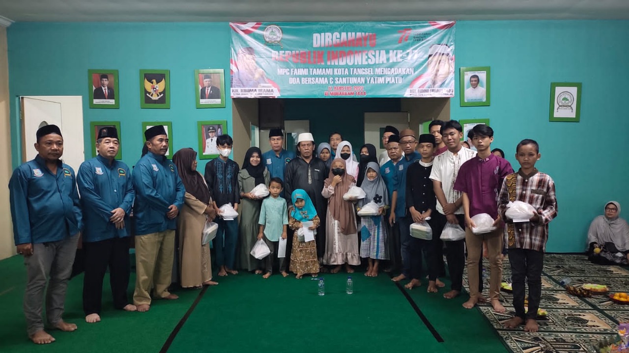 SINARGUNUNG.COM, TANGSEL | Dalam rangka perayaan HUT RI ke 77 MPC Fahmi Tamami Kota Tangerang Selatan ( Forum Silaturahmi Ta’mir Masjid Mushola Indonesia) pimpinan Ustadz Ahmad Firdaus Haqqi (16/8) mengadakan tasyukuran dan santunan di jalan setia budi no 9 Pelurahan Pamulang Barat Kecamatan Pamulang Kota Tangerang Selatan.