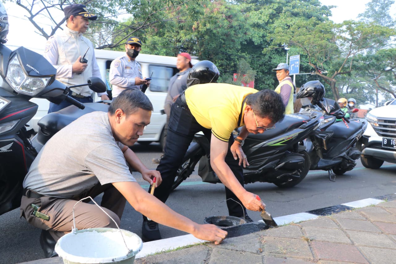 “Hari ini bersama teman – teman dari seluruh OPD, kita ngecat kanstin bareng biar Kota Tangerang lebih rapih,” ujar Arief