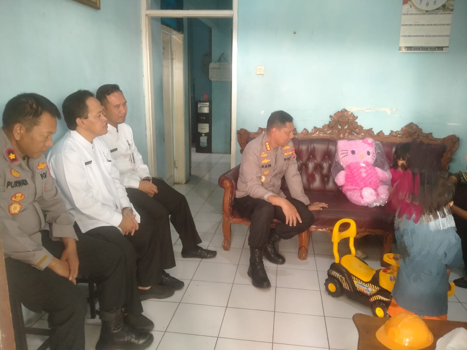 Dalam kunjungan Kapolres juga didampingi unit PPA (Perlindungan perempuan dan Anak) Polres Metro Tangerang Kota, Pusat Pelayanan Terpadu Pemberdayaan Perempuan dan Anak (P2TP2A) dan Petugas Dinas Sosial Kota Tangerang.