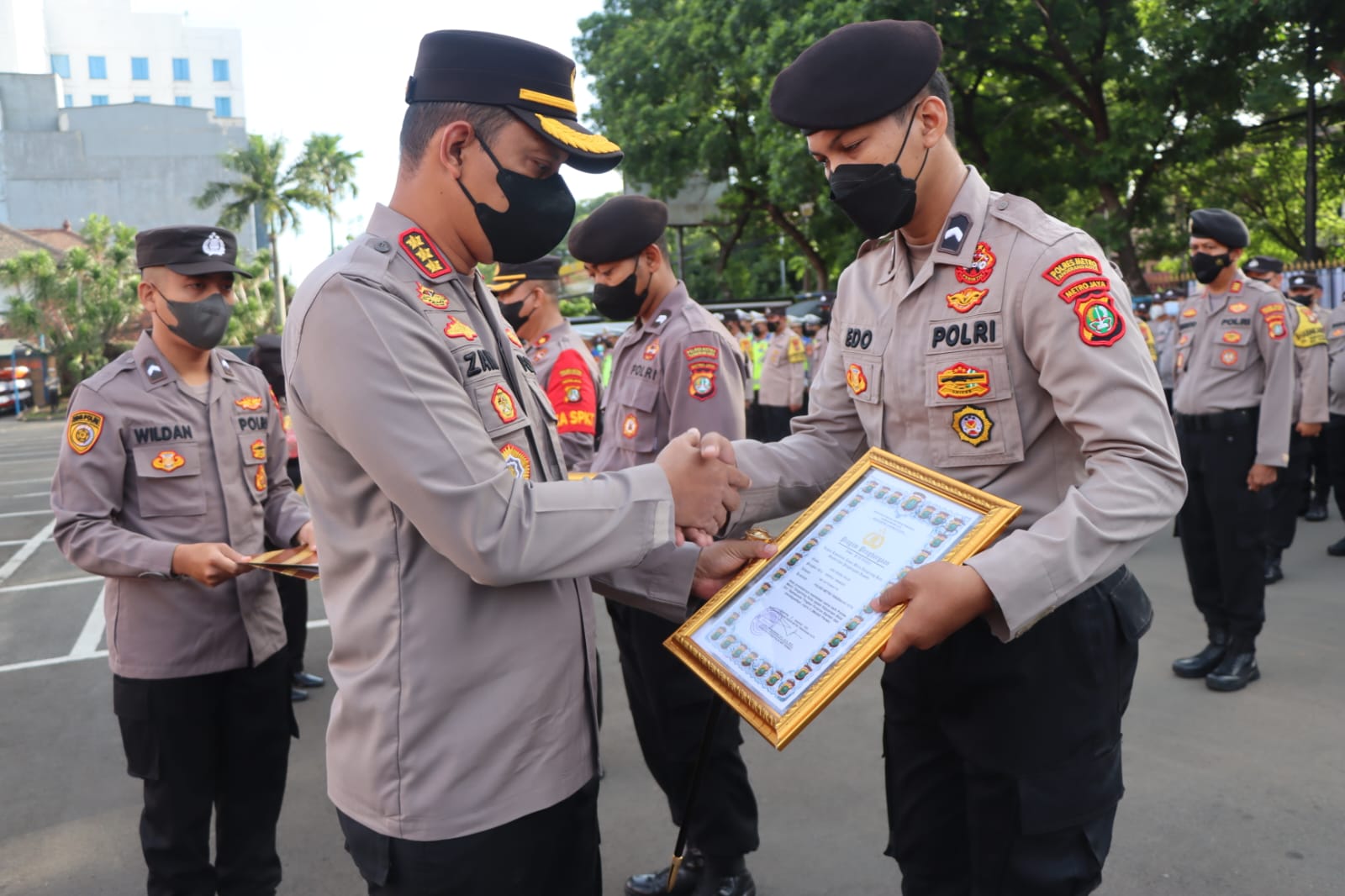 Penghargaan tersebut diserahkan Kapolres secara langsung saat apel pagi di lapangan Mapolres Metro Tangerang Kota. Senin (12/12/2022).