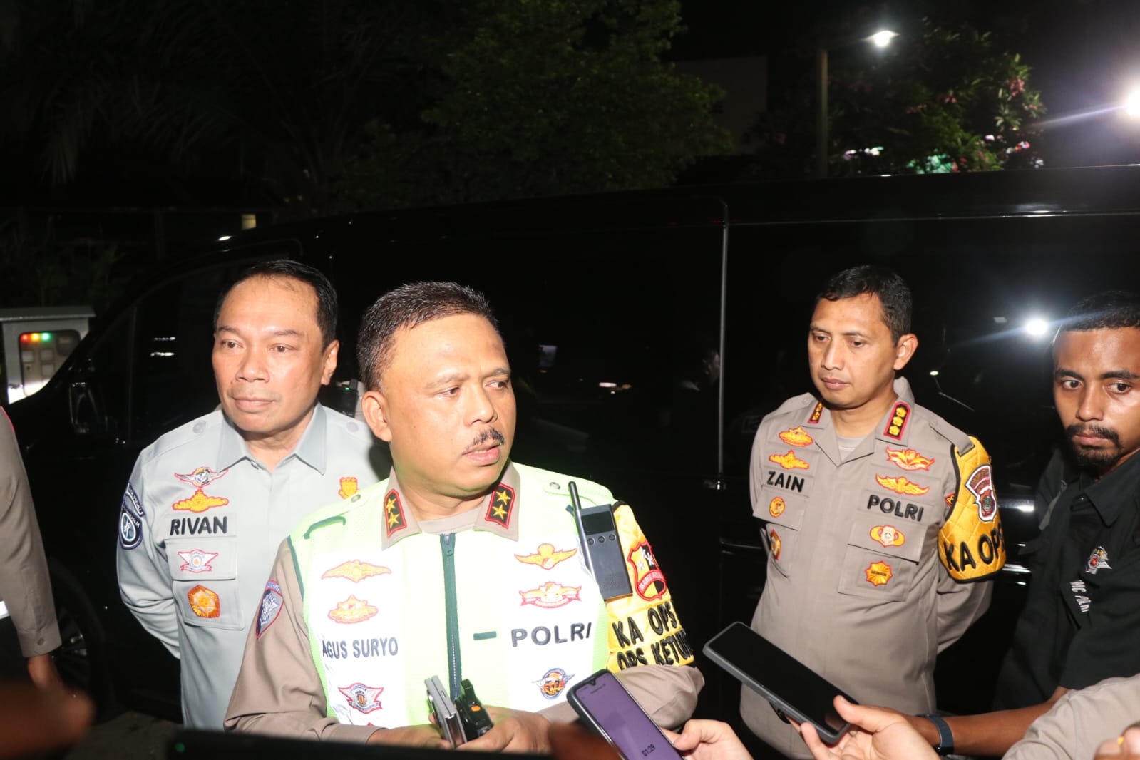 Hal tersebut diungkapkan, Kakorlantas saat Ia memantau arus mudik di Pos Pelayanan (Posyan) Rest Area KM 13,5 arah Jakarta – Merak bersama Menteri Perhubungan RI (Menhub RI) Dudy Purwagandhi, didampingi Kapolres Metro Tangerang Kota, Kombes Pol Zain Dwi Nugroho. Minggu (23/3/2025) Malam WIB.