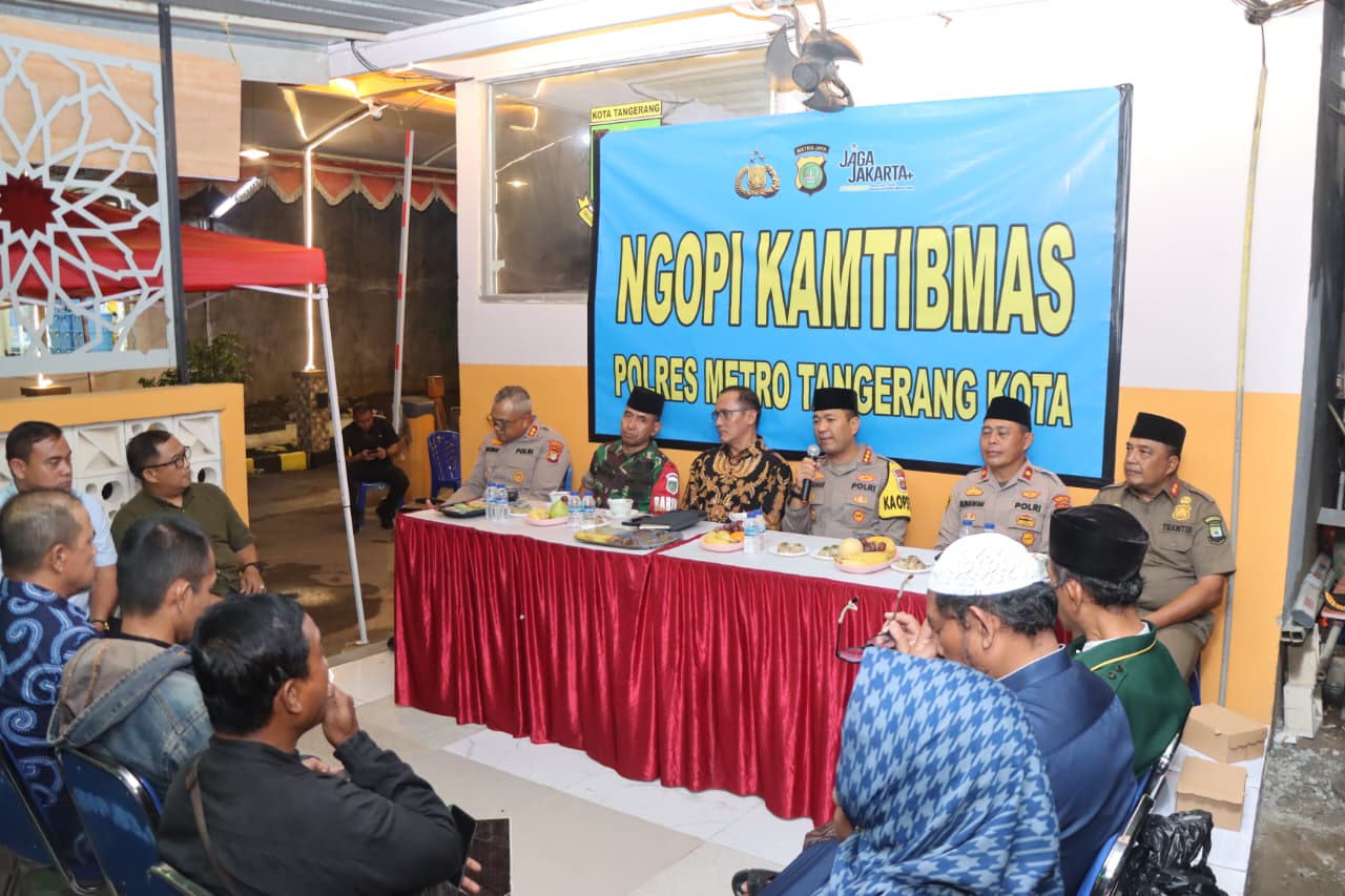 sinargunung.com, Kota Tangerang — Kapolres Metro Tangerang Kota Kombes Pol. Dr. Raden Muhammad Jauhari, S.H., S.I.K., M.S.I. melaksanakan kegiatan Ngopi Kamtibmas bersama warga Kelurahan Poris Jaya, Kecamatan Batuceper, pada Kamis (20/11/2025) pukul 20.00 WIB bertempat di Satkamling RW 06 Perum Simprug Di Poris. Kegiatan ini bertujuan mempererat kedekatan Polri dengan masyarakat serta menyerap berbagai aspirasi warga terkait situasi keamanan dan ketertiban masyarakat (kamtibmas).