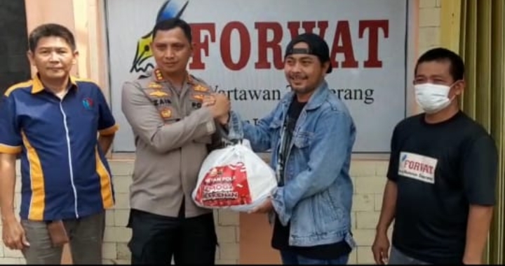 Melihat kondisi itu, Kapolres Metro Tangerang Kota Kombes Pol. Zain Dwi Nugroho berinisiatif memberikan bantuan sembako kepada para wartawan yang ada di Kota Tangerang, diantaranya organisasi Forum Wartawan Tangerang (FORWAT).
