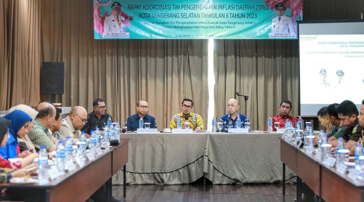 SINARGUNUNG.COM, TANGSEL | Berbagai langkah antisipatif dalam pengendalian inflasi terus dilakukan oleh Pemerintah Kota Tangerang Selatan. Enam langkah antisipatif, di antaranya memastikan kelancaran pasokan bahan pangan, hingga menggelar pasar murah di berbagai titik juga dilakukan. Hal tersebut disampaikan Wakil Wali Kota Pilar Saga Ichsan saat membuka rapat koordinasi Tim Pengendalian Inflasi Daerah (TPID) Triwulan II Tahun 2023 yang digelar di Hotel Soll Marina, Serpong Utara, pada Kamis (22/06).