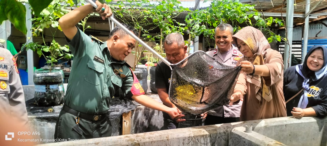 sinargunung.com, Kota Tangerang | Kodam Jaya, Tangerang Kota | Menjaga ketahanan pangan di wilayah binaan, Pelda Hery Babinsa Kelurahan Cimone, Koramil 01/Tgr, Kodim 0506/Tgr memonitoring langsung panen lele di Jalan Cimone permai Kelurahan Cimone Kecamatan Karawaci, Kota Tangerang, Rabu (08/01/2025).