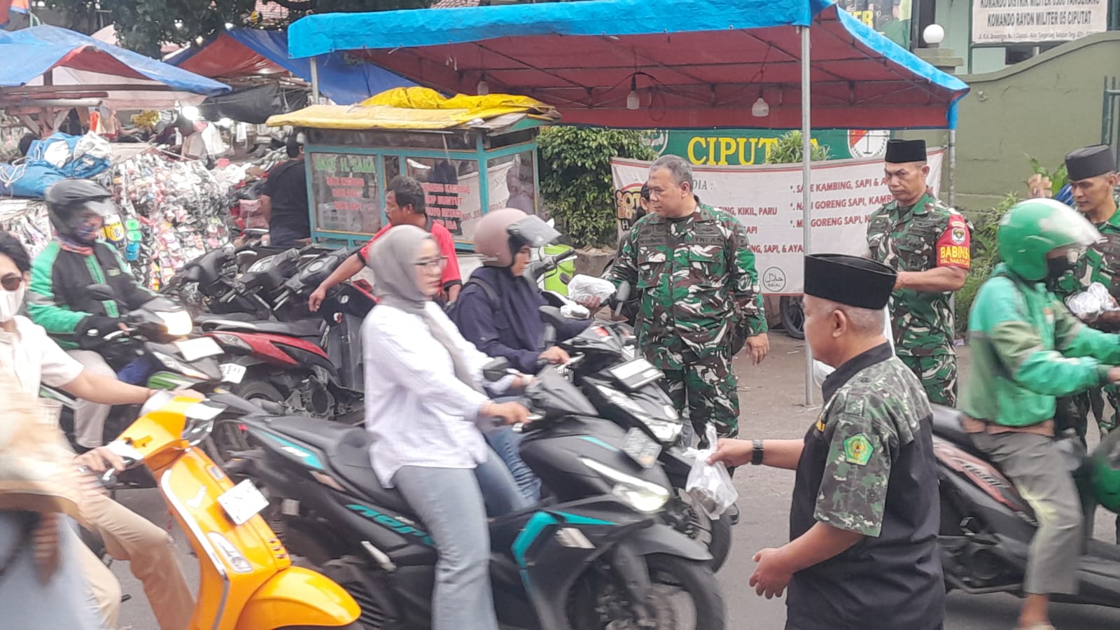 sinargunung.com, Kodam Jaya, Tangerang | Kegiatan berbagi takjil di bulan Ramadan kembali digelar oleh Koramil 05/Ciputat, Kodim 0506/Tangerang. Personel Koramil 05/Cpt, Kodim 0506/Tangerang bersama ormas Hipakad Tangsel dan FBR turun langsung ke jalan membagikan takjil kepada para pengendara dan warga yang melintas di depan Makoramil 05/Ciputat, Jalan Kihajar Dewantara, Ciputat, Kota Tangerang Selatan, Jumat (28/3/2025) sore.