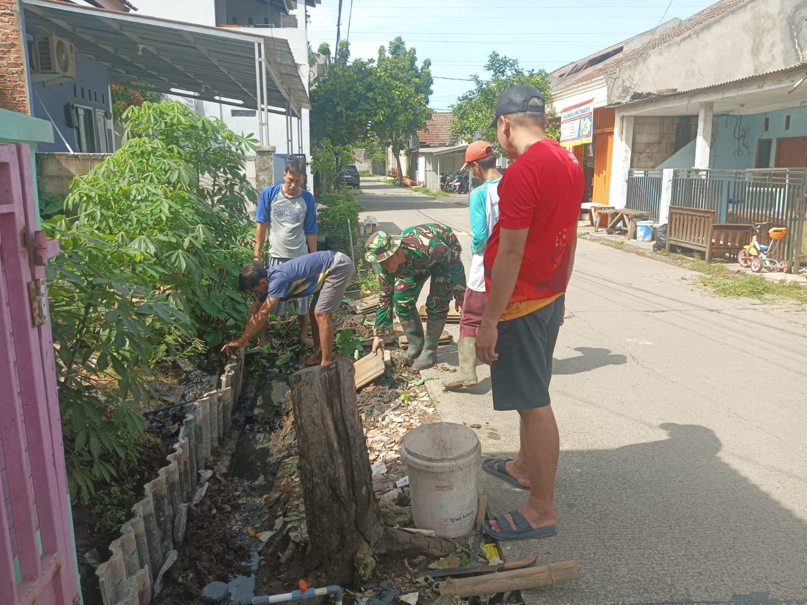 Kegiatan dimulai pukul 08.00 WIB dan melibatkan sejumlah unsur, di antaranya Lurah Perigi Baru, Pelda Hari Timbul, Sertu Sumartono, Ketua RT setempat, para warga, serta anak-anak Saka Wira Kartika (SWK) Koramil Pondok Aren. Mereka membersihkan sampah dan saluran air di sekitar lingkungan guna memastikan aliran air lancar dan tidak menjadi sarang nyamuk.
