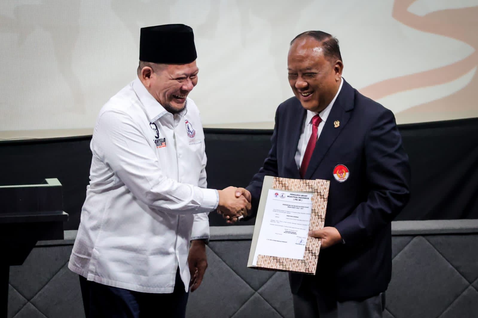 SINARGUNUNUNG, JAKARTA | Ketua DPD RI, AA LaNyalla Mahmud Mattalitti, resmi menjabat sebagai Ketua Umum PB Muaythai Indonesia periode 2022-2026. LaNyalla dan jajaran pengurus dilantik oleh Komite Olahraga Nasional Indonesia (KONI) Pusat, Kamis (18/8/2022).