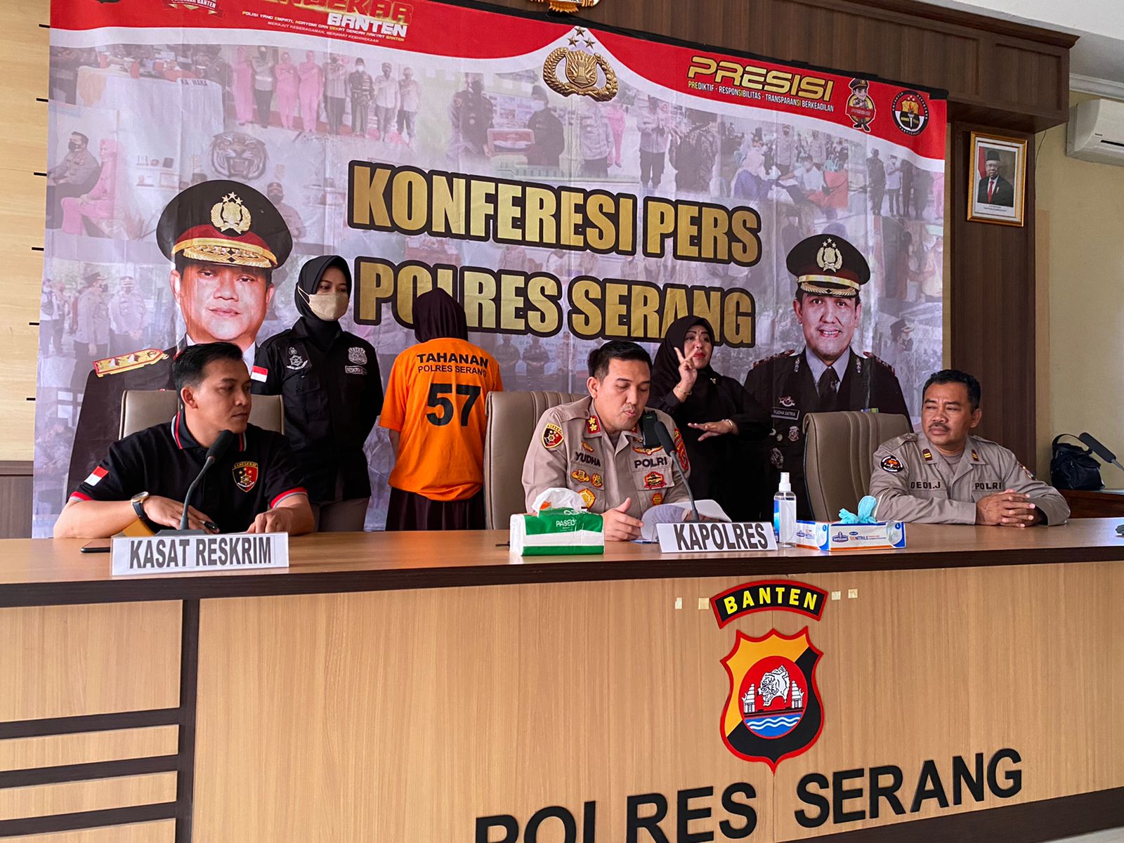 “Antara TKP pembuangan bayi dan rumah kontrak tersangka hanya berjarak 20 meter,” kata Kapolres Serang, didampingi Kasat Reskrim Polres Serang AKP Dedi Mirza, saat menggelar presscon pada Selasa (26/09) di aula utama Mapolres Serang.
