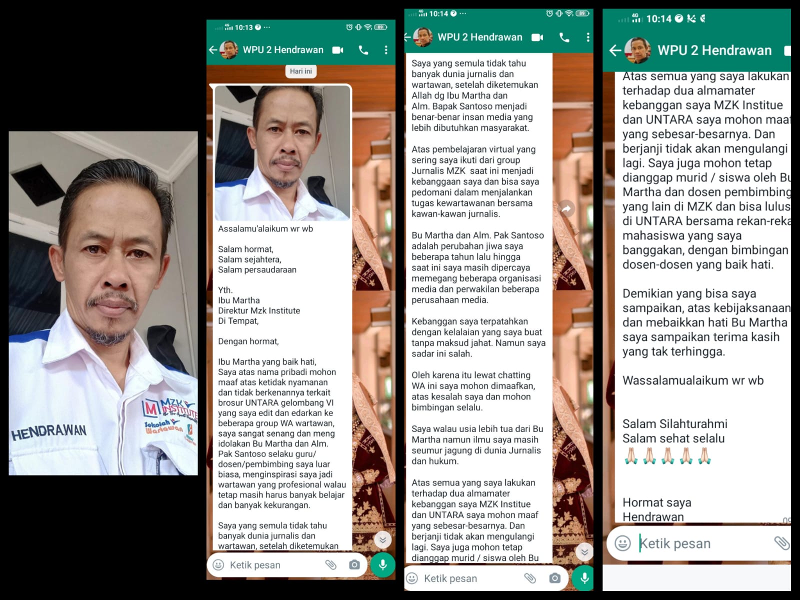 Ia pun berjanji untuk tidak mengulangi lagi perbuatannya, sekaligus meminta MZK agar tetap menganggapnya sebagai siswa atau murid Sekolah Wartawan MZK Institute.