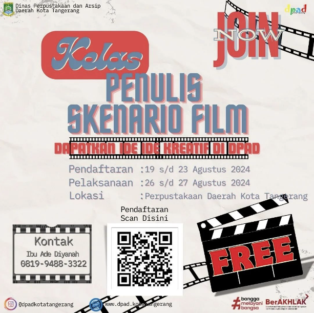 Selain itu, seluruh informasi mengenai pendaftaran Kelas Penulis Skenario Film dapat diakses melalui kanal resmi Instagram di @dpadkotatangerang atau 0819-9488-3322 (Ade Diyanah). (red/rls)