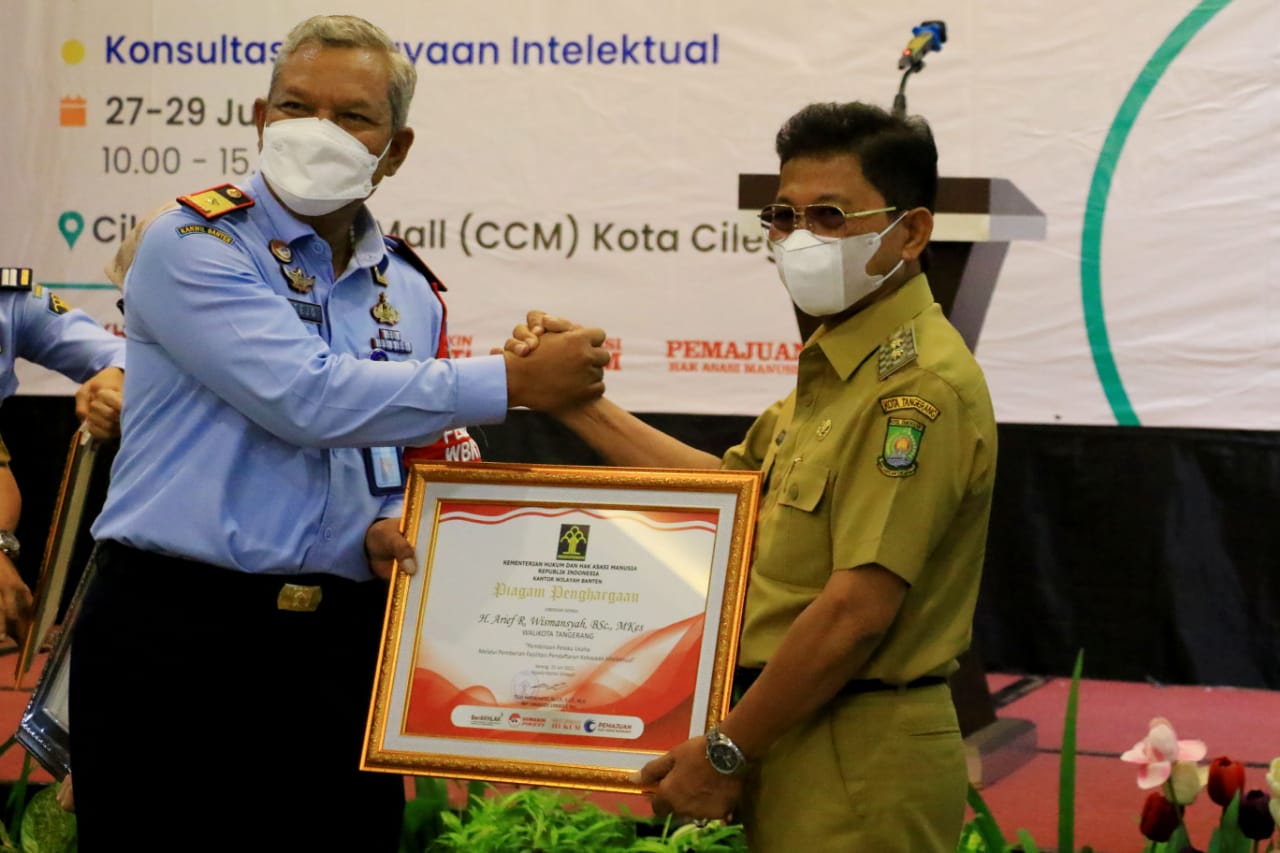 Wakil Wali Kota Tangerang H. Sachrudin, hadir dan menerima secara langsung piagam penghargaan tersebut yang diberikan oleh Kepala Kantor Wilayah Kemenkumham Provinsi Banten Tejo Harwanto dalam acara Pembukaan Program Mobile Intellectual Property Clinic yang digelar oleh Kemenhumham RI Wilayah Banten bertempat di Hotel Forbis, Cilegon.