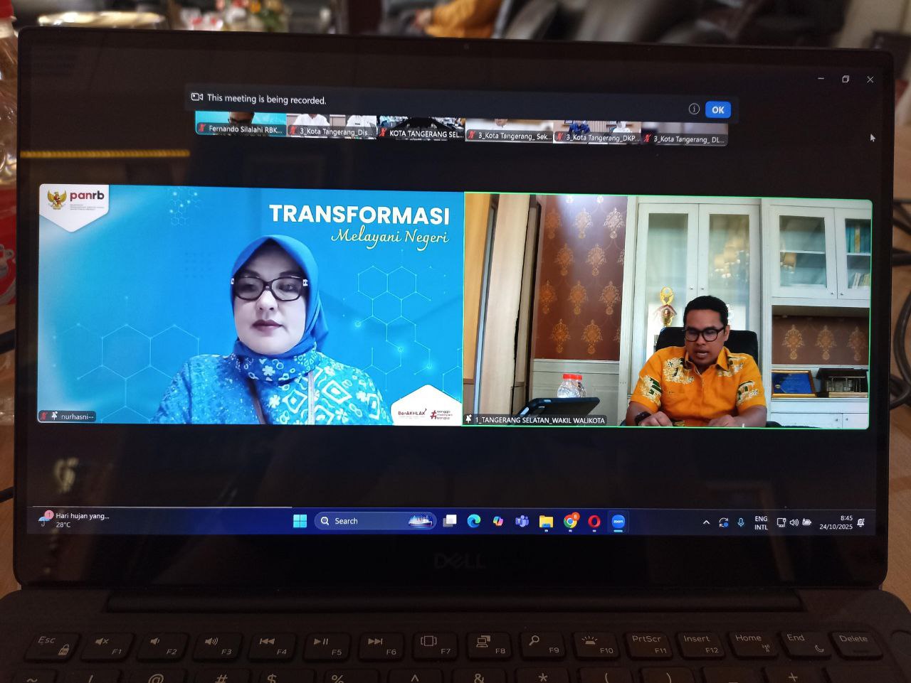 sinargunung.com, Tangsel | Pemerintah Kota Tangerang Selatan (Tangsel) mengikuti Evaluasi Sistem Akuntabilitas Kinerja Instansi Pemerintah (SAKIP) Tahun 2025 yang diselenggarakan oleh Kementerian Pendayagunaan Aparatur Negara dan Reformasi Birokrasi (Kemenpan RB), pada Jumat (24/10/2025). Kegiatan ini dilaksanakan melalui metode in depth interview secara daring melalui zoom meeting.