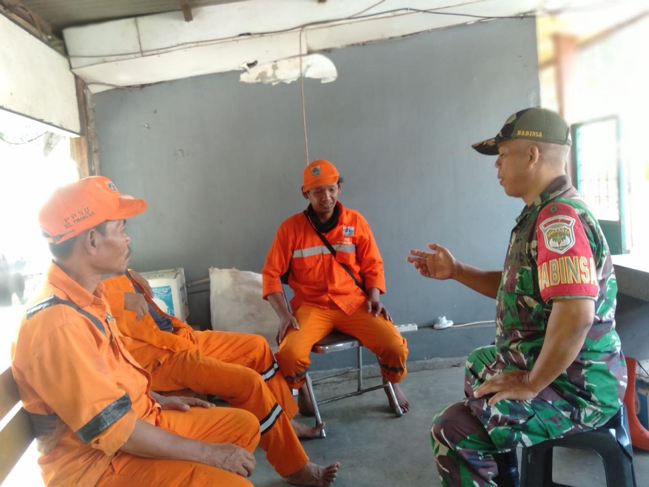 sinargunung.com, Kodam Jaya, Jakarta Barat | Dalam menjaga kebersihan lingkungan Babinsa Koramil 01/Tamansari Kodim 0503/Jakarta Barat Serma Wakdinator melaksanakan komunikasi sosial (komsos) bersama anggota PPSU di Jalan Pangeran Jayakarta, RTT. 01/01, Kelurahan Pinangsia, Kecamatan Tamansari, Jakarta Barat. Minggu (5/1)