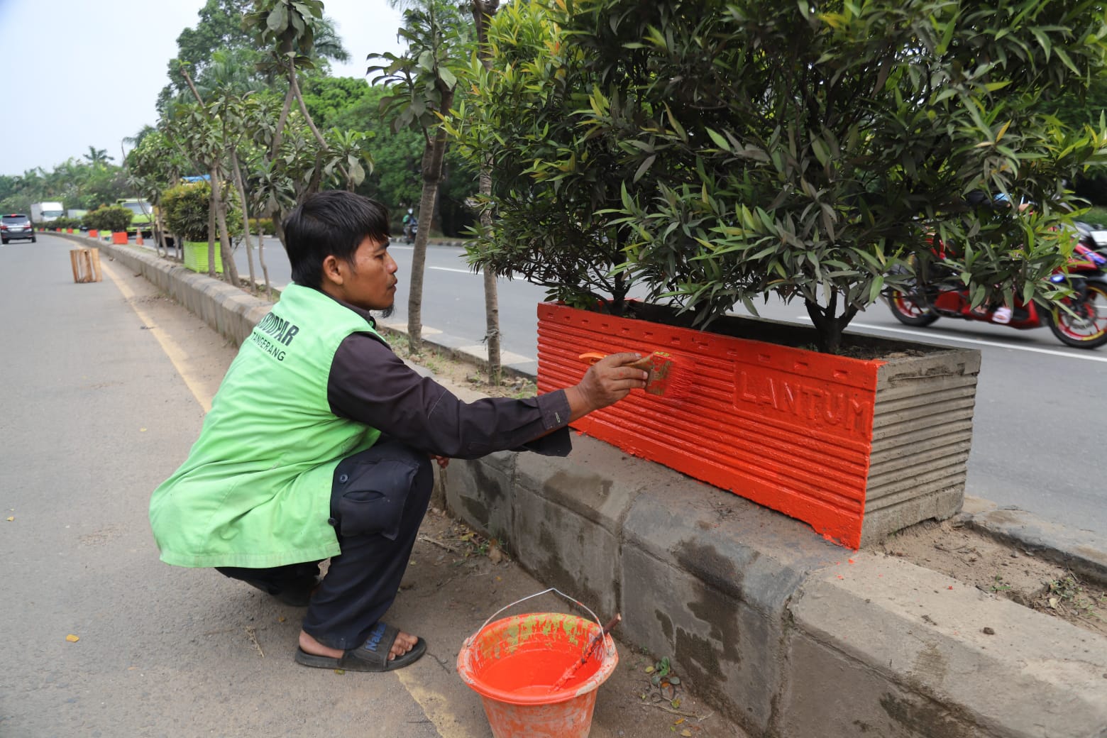 Lanjutnya, pengecatan ulang pot tanaman ini merupakan bentuk komitmen Pemerintah Kota Tangerang dalam menjaga fasilitas umum agar tetap dalam kondisi baik dan nyaman digunakan.