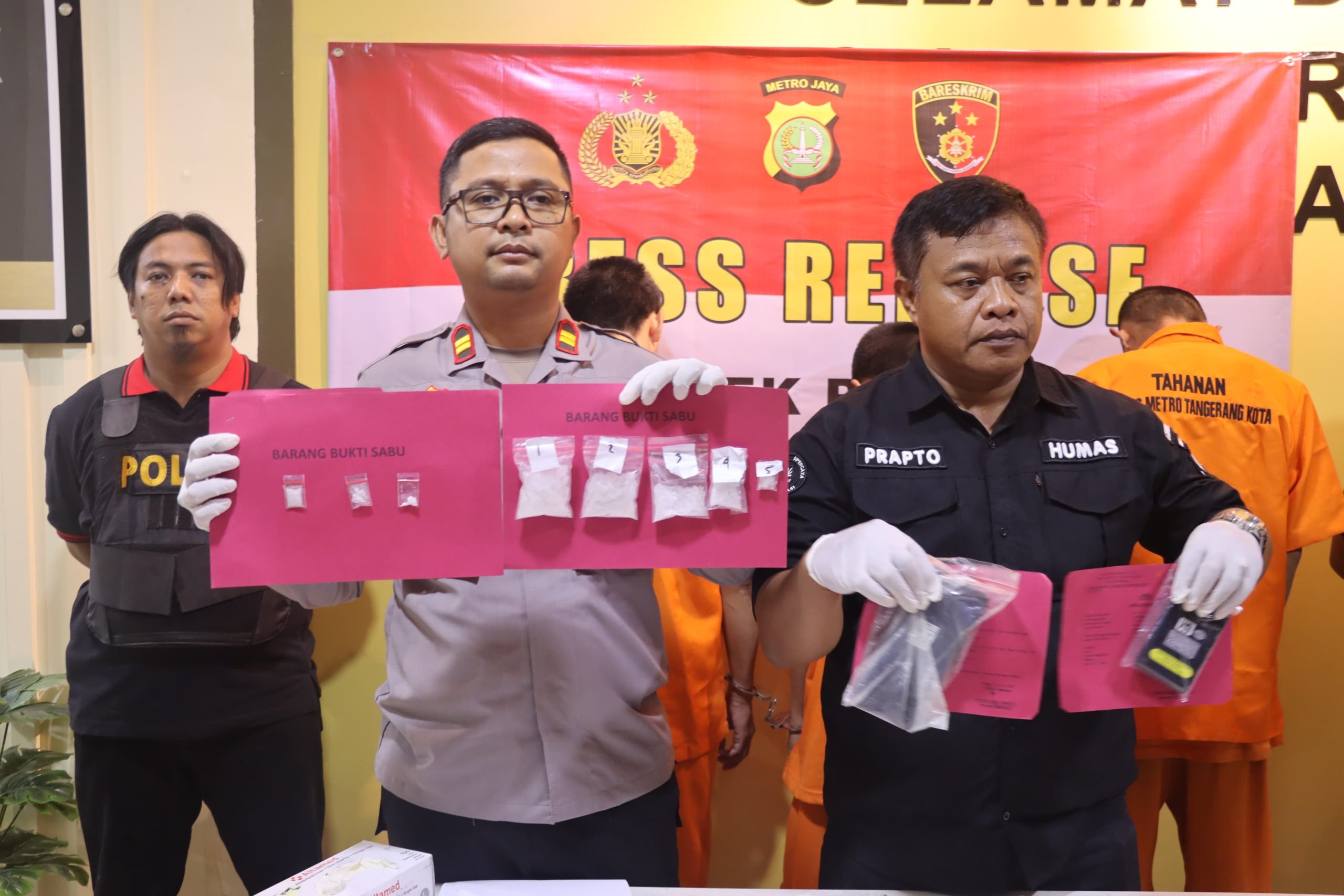 Kapolsek Pinang, Iptu Adityo Wijanarko didampingi Kasi Humas Polres Metro Tangerang Kota, AKP Prapto Lasono dalam keterangan persnya mengatakan penangkapan pelaku berdasarkan informasi masyarakat mengenai adanya Peredaran Narkotika jenis Sabu yang berada di sekitar TKP.