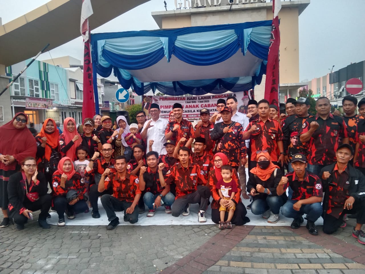 SINARGUNUNG.COM, CILEGON | Pemuda Pancasila Pimpinan Anak Cabang Kecamatan Cibeber (PP PAC) memperingati Hari lahir Pancasila dengan menggelar Acara Santunan Anak Yatim di halaman Residence Grand Cilegon, Kamis (01/06/2023).