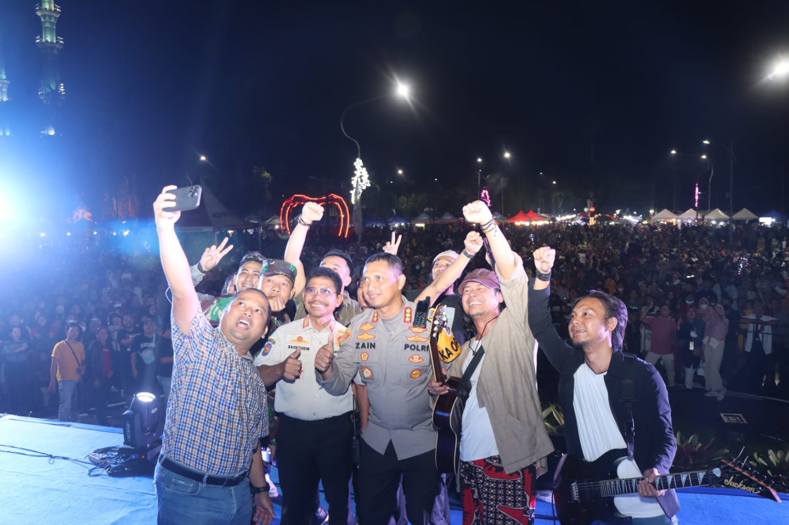 “Selamat Tahun Baru 2023, semoga di tahun baru ini kita selalu diberikan kesehatan, keselamatan dan kesuksesan, tetap jaga kondusifitas, selalu waspada terhadap diri masing-masing ditengah keramaian pesta rakyat ini,” seru Zain.
