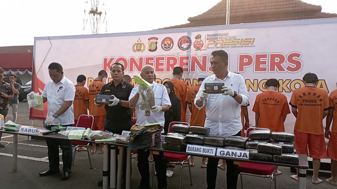 “Selama bulan Mei dan Juni, jajaran satnarkoba Polres Metro Tangerang Kota berhasil mengamankan 10 pengedar narkotika jenis sabu dan ganja berkat adanya informasi dari masyarakat dengan total barang bukti ganja sebanyak 43.289,17 gram dan sabu sebanyak 270,08 gram,” jelasnya.
