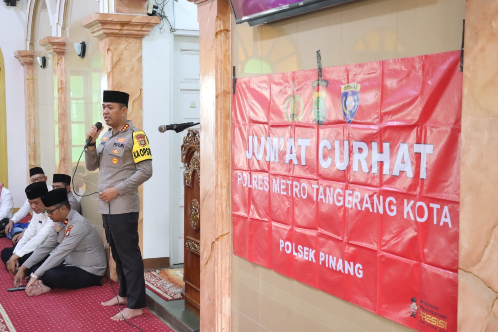 sinargunung.com, Kota Tangerang | Polres Metro Tangerang Kota kembali menggelar program Jumat Keliling dan Jumat Curhat. Kali ini, kegiatan dipimpin langsung Kapolres Metro Tangerang Kota, Kombes Pol Dr. Raden Muhammad Jauhari, di Masjid Al Muhajirin, Kelurahan Kunciran Indah, Kecamatan Pinang, Jumat (19/9/2025).