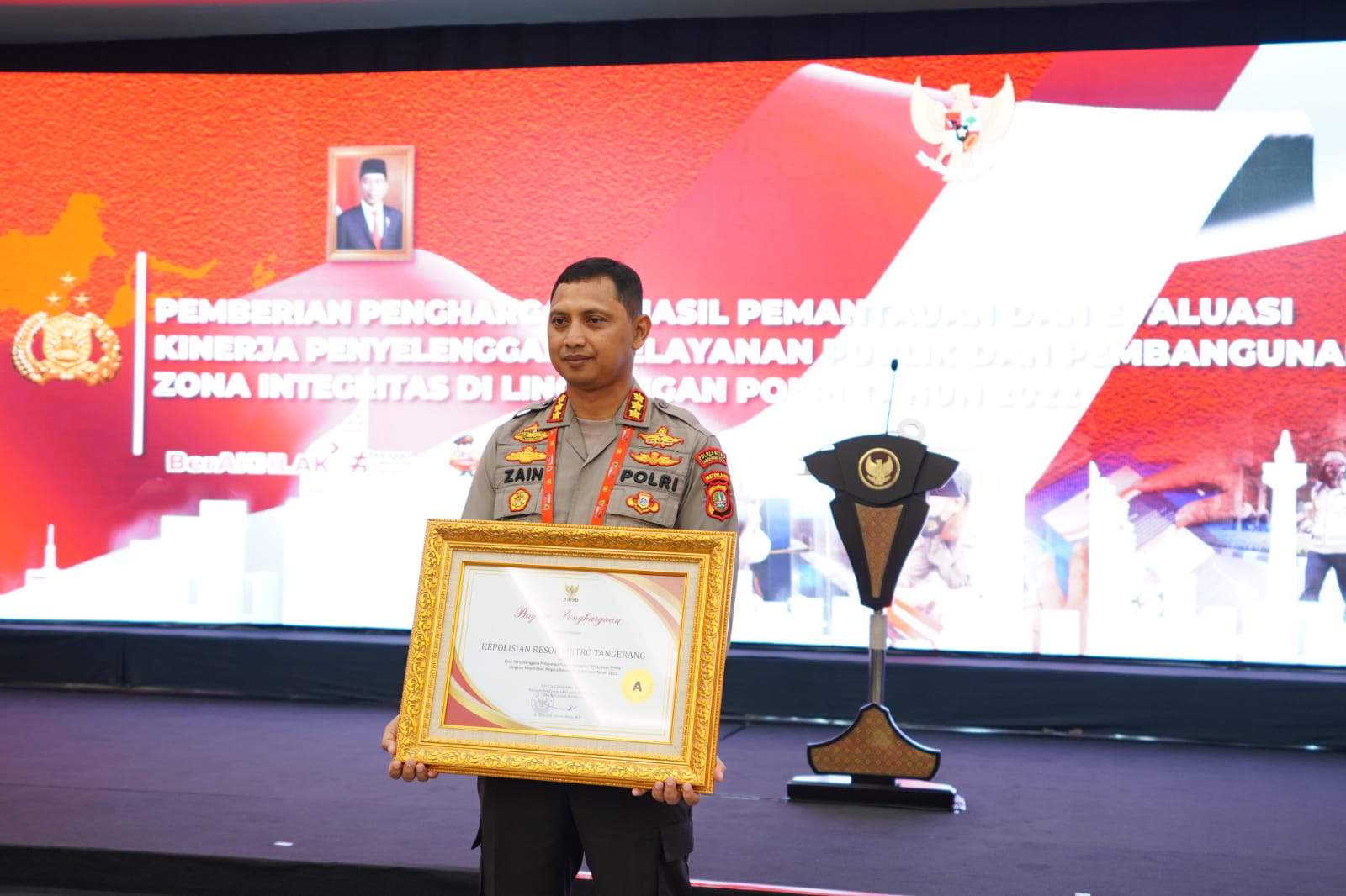 SINARGUNUNG.COM, JAKARTA | Wakil Presiden RI (Wapres) Ma’ruf Amin menghadiri sekaligus menyerahkan Penghargaan Kategori Pelayanan Prima kepada Polres/Polresta/ Polres Metro / Polrestabes dan Predikat Pembangunan Zona Integritas di lingkungan Polri tahun 2022 dalam Pemantauan Evaluasi Kinerja Penyelenggara Pelayanan Publik yang di laksanakan oleh Kemen PAN-RB.