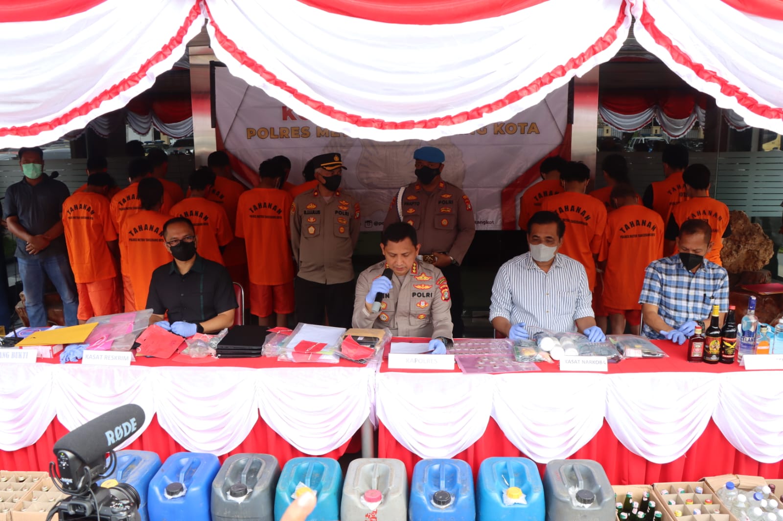 SINARGUNUNG. COM, KOTA TANGERANG | Polres Metro Tangerang Kota menggelar konferensi pers pengungkapan berbagai macam kasus pada operasi rutin yang ditingkatkan di periode pekan terakhir Agustus memasuki September 2022.
