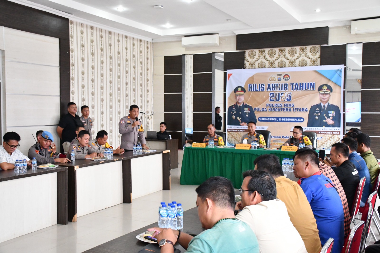 sinargunung.com, Nias – Polres Nias, Polda Sumatera Utara, menggelar Rilis Akhir Tahun 2025 bertema “Aktualisasi Transformasi Polri untuk Masyarakat” di Aula Sanika Satyawada Polres Nias. Kegiatan tersebut dipimpin langsung oleh Kapolres Nias, AKBP Agung S.D.C., S.Psi., M.Psi., Psi., M.K.P., dan dihadiri Wakapolres, jajaran pejabat utama, personel Polres Nias, serta insan media.