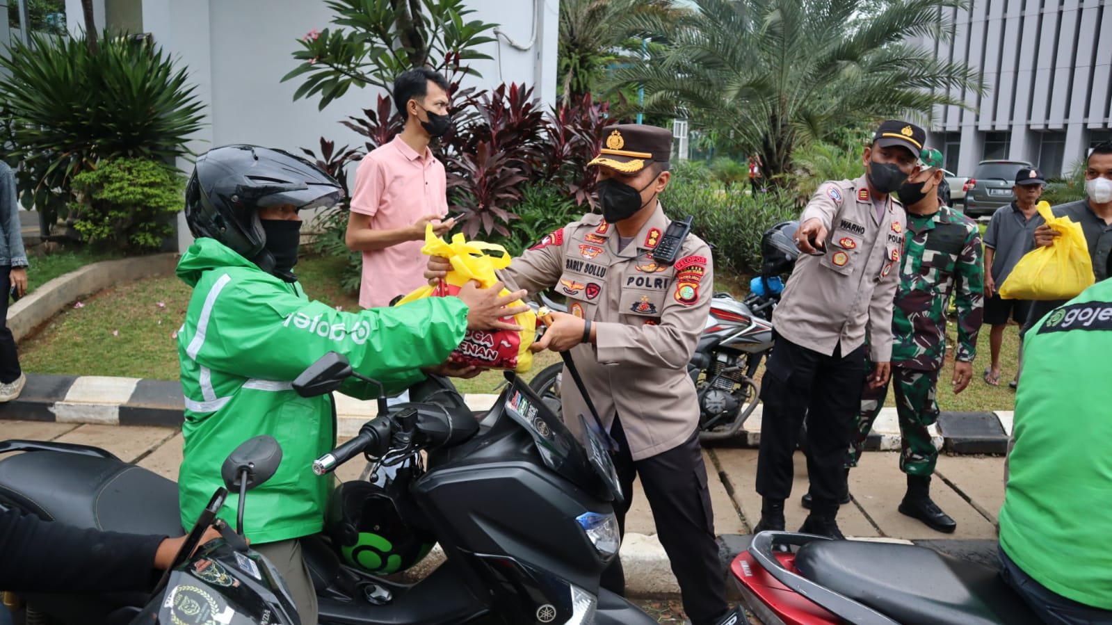 Sebanyak 200 Paket sembako dari Kapolres Tangerang Selatan diberikan kepada Ojeg online serta masyarakat yang berada di sekitar Jl.Adi Sengkong Depan Kantor Wali Kota Tangerang Selatan Blok A No.8 Serua Kec Ciputat, Tangerang Selatan ini langsung diberikan oleh Kapolres Tangerang Selatan bersama Mahasiswa Unpam yang tergabung dalam PMII