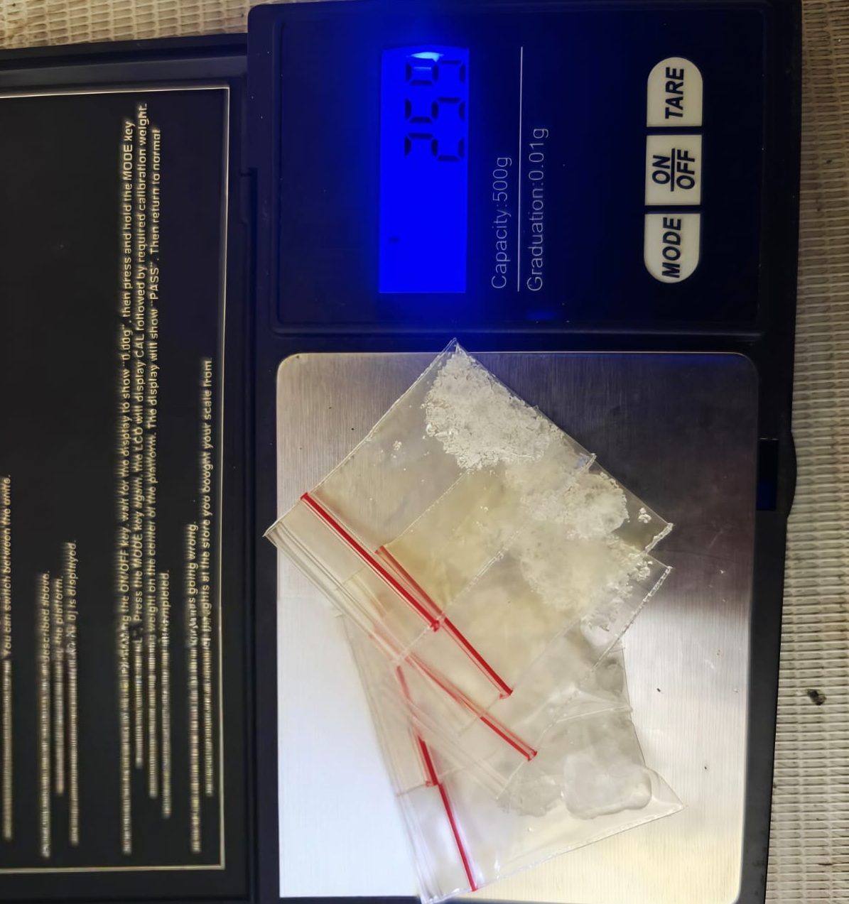 Hasil uji laboratorium sementara menunjukkan kristal putih tersebut positif mengandung methamphetamine.
