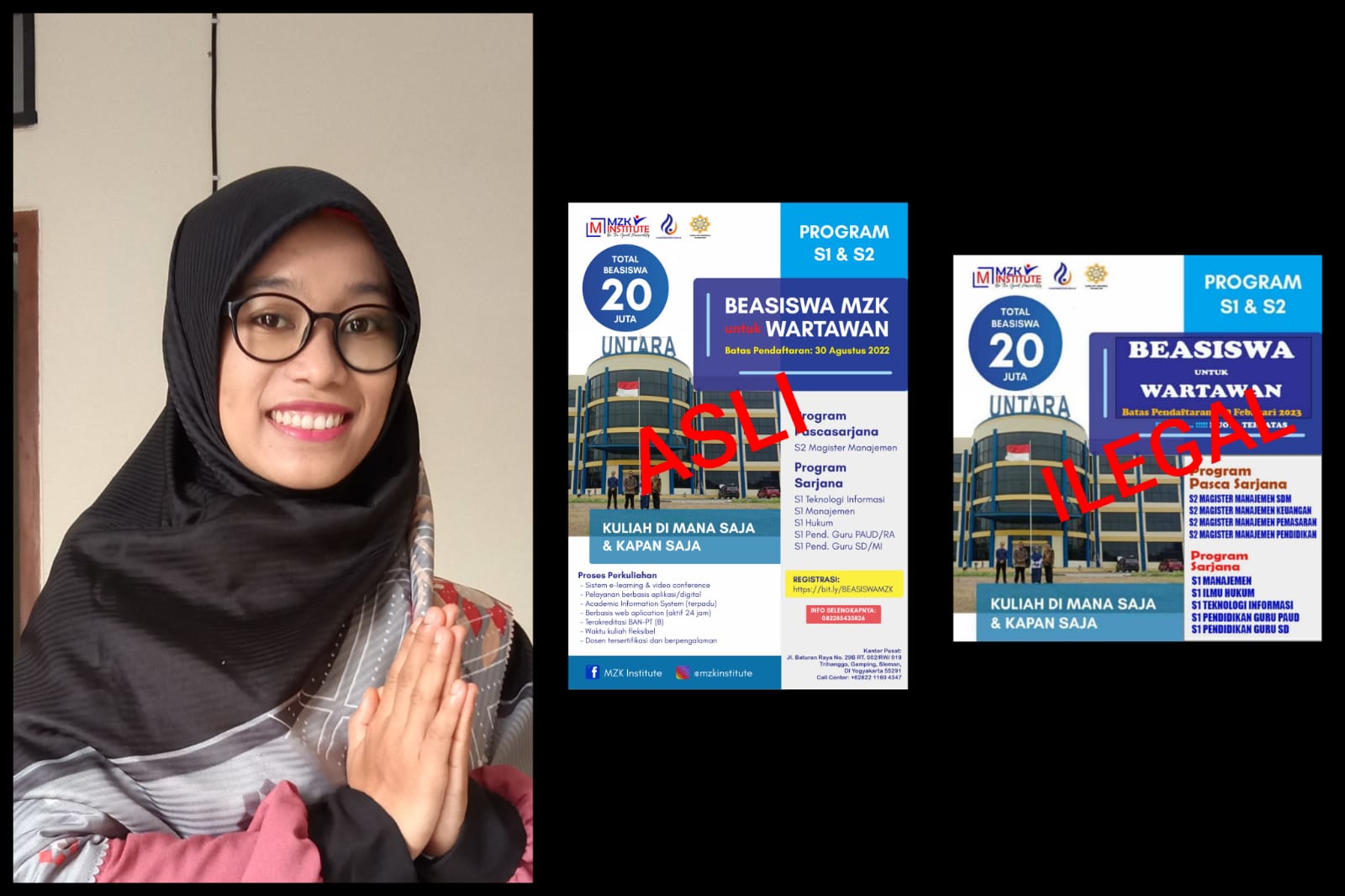 “Semuanya palsu, saya buatnya pendaftaran akhir Agustus 2022. Ini Februari 2023. Juga logo-logonya semuanya tanpa izin kami dan kampus,” tegas Martha.