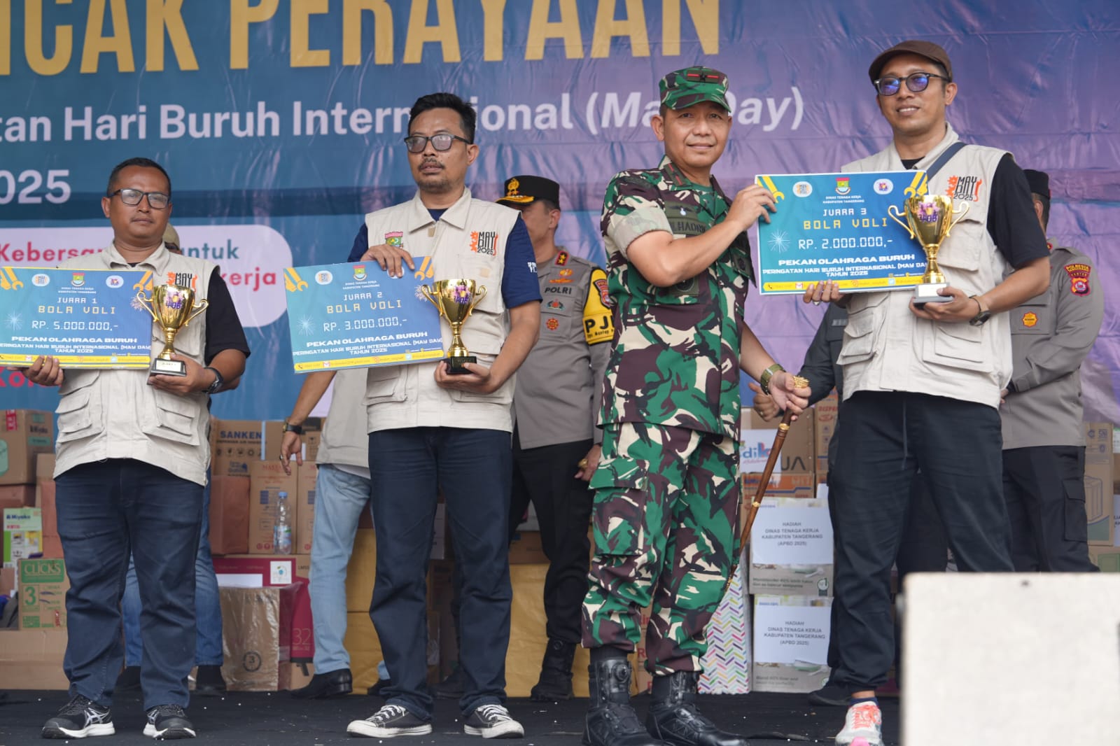 sinargunung.com, Tangerang | Komandan Korem 052/Wijayakrama, Brigjen TNI Zulhadrie S.Mara, M.Han., turut hadir dalam acara puncak perayaan Hari Buruh Internasional (May Day) tahun 2025 tingkat Kabupaten Tangerang. Acara dipusatkan di Puspem Kab. Tangerang, Tigaraksa. Kamis (1/5/2025).