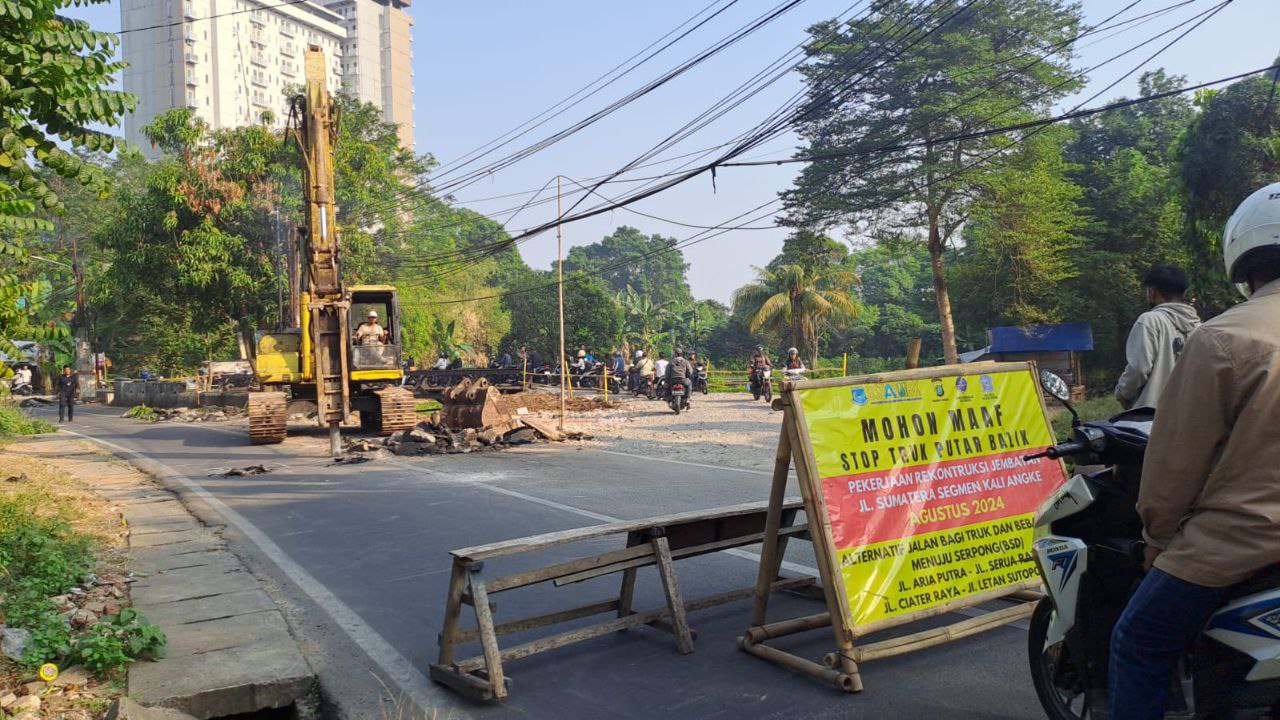 sinargunung.com, Tangsel | Pemerintah Kota Tangerang Selatan melalui Dinas Sumber Daya Air, Bina Marga, dan Bina Konstruksi (DSDABMBK) resmi memulai proyek rekonstruksi Jembatan Kali Angke yang berada di Jalan Sumatera Segmen Kali Angke.