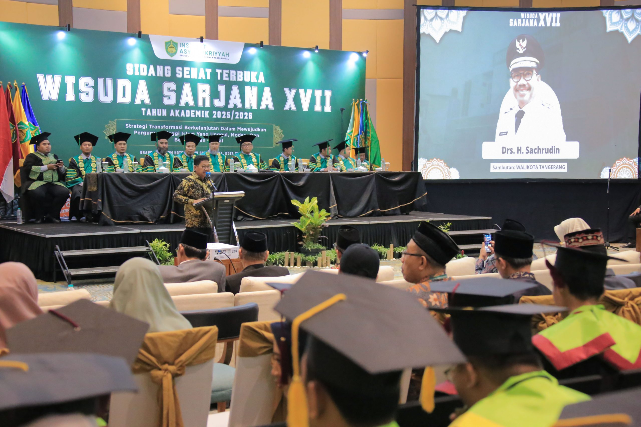 Ajakan tersebut disampaikan saat menghadiri Wisuda Institut Asy-Syukriyyah Angkatan XVII di Hotel Grand Sol Marina serta Wisuda Politeknik Gajah Tunggal Angkatan XXXVI di Hotel Istana Nelayan, Kecamatan Jatiuwung, Sabtu (15/11/2025).